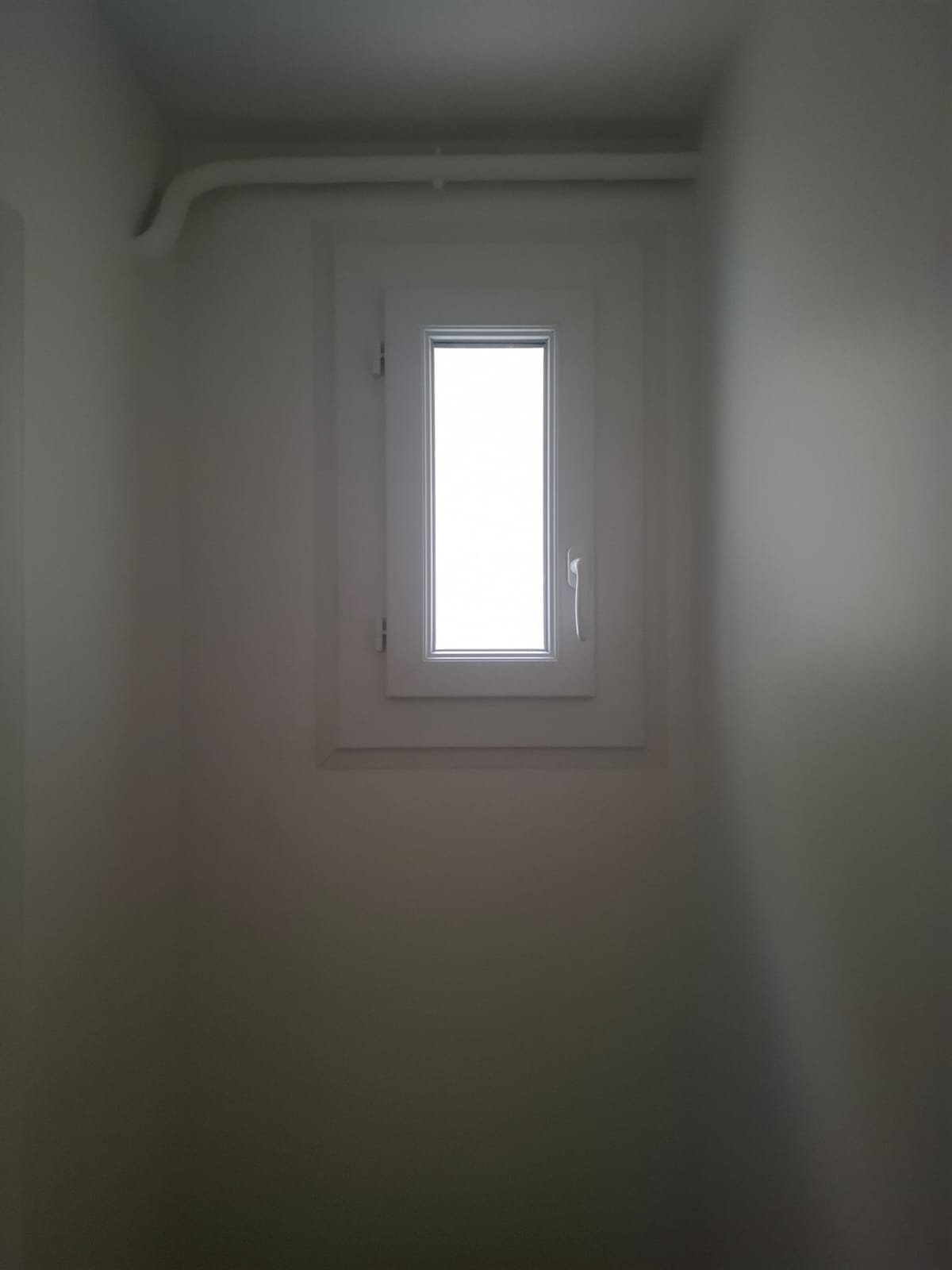 La petite fenêtre de la salle de bains méritait une attention particulière. Pour concilier luminosité naturelle et discrétion, nous avons installé un vitrage granité G200 un verre dépoli texturé qui diffuse la lumière tout en préservant l’intimité. Ce type de vitrage est particulièrement recommandé pour les espaces sensibles comme les salles de bains, toilettes ou paliers.