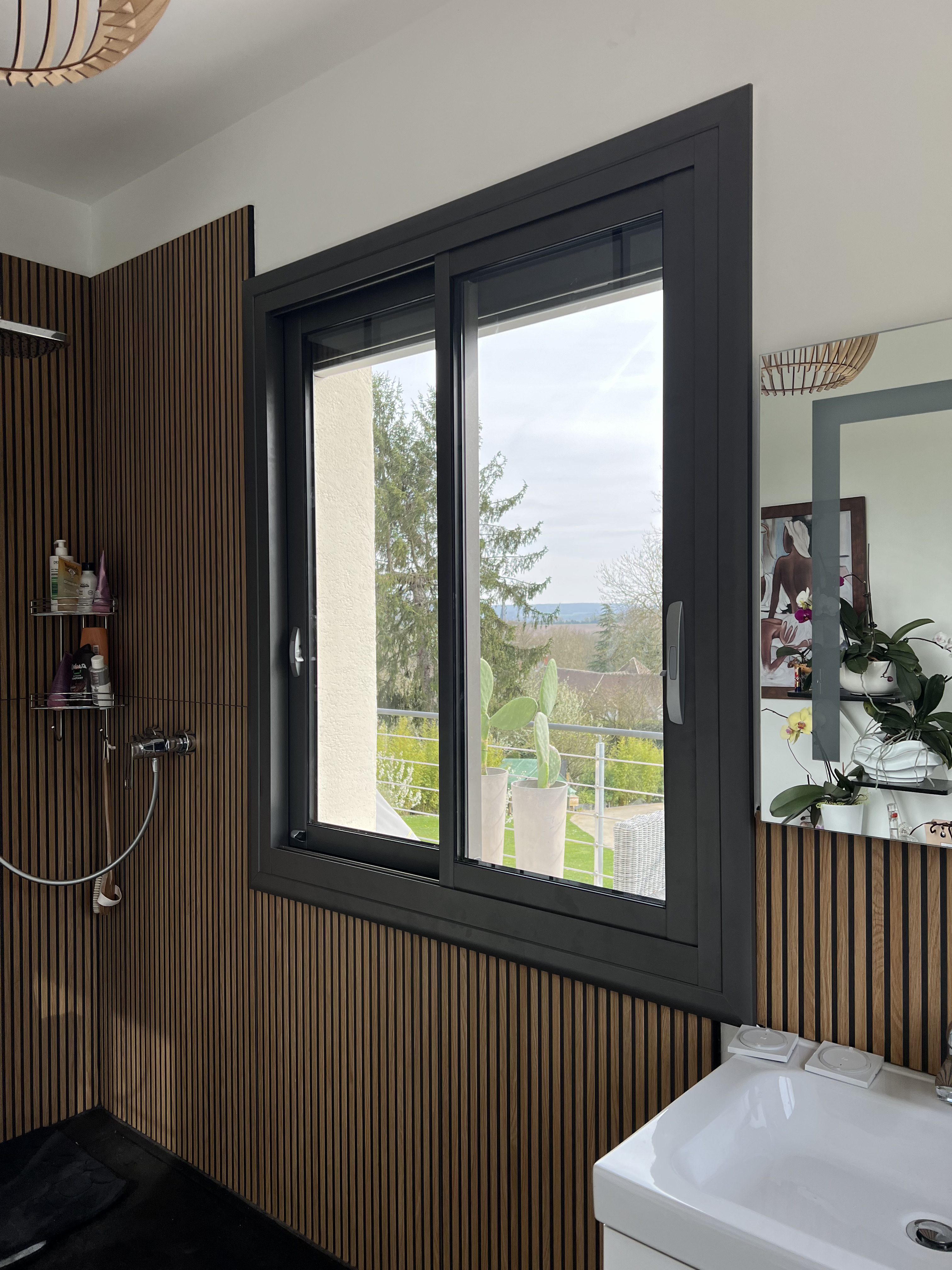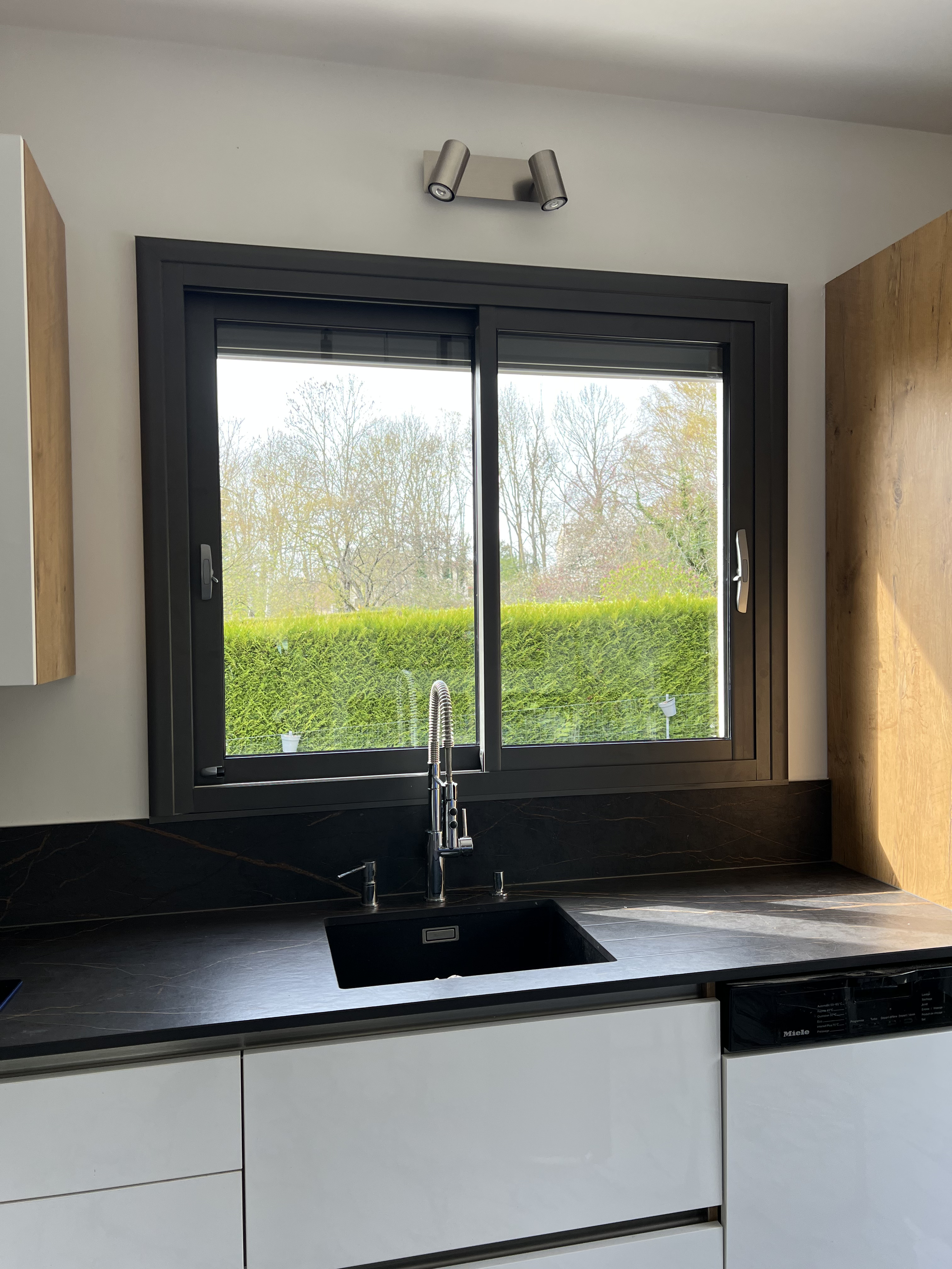 Les fenêtres en aluminium sont reconnues pour la finesse de leurs profilés, qui maximisent la surface vitrée et donc l'apport de lumière naturelle. Le coloris gris 2900 sablé choisi ici apporte une touche contemporaine sobre, en parfaite adéquation avec les tendances actuelles de l'architecture résidentielle. Ce chantier illustre la qualité d'installation que nos équipes apportent sur chaque projet, de la prise de mesures à la finition.